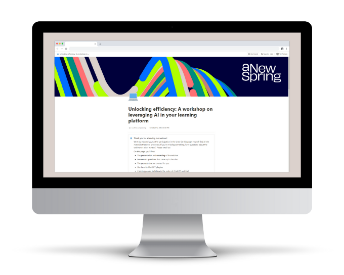 AI Expert, Ilona Boomsma turned audience questions into effective prompts and Learning Innovator, Roy de Vries, shared how you can directly apply this new knowledge in a learning platform like aNewSpring.