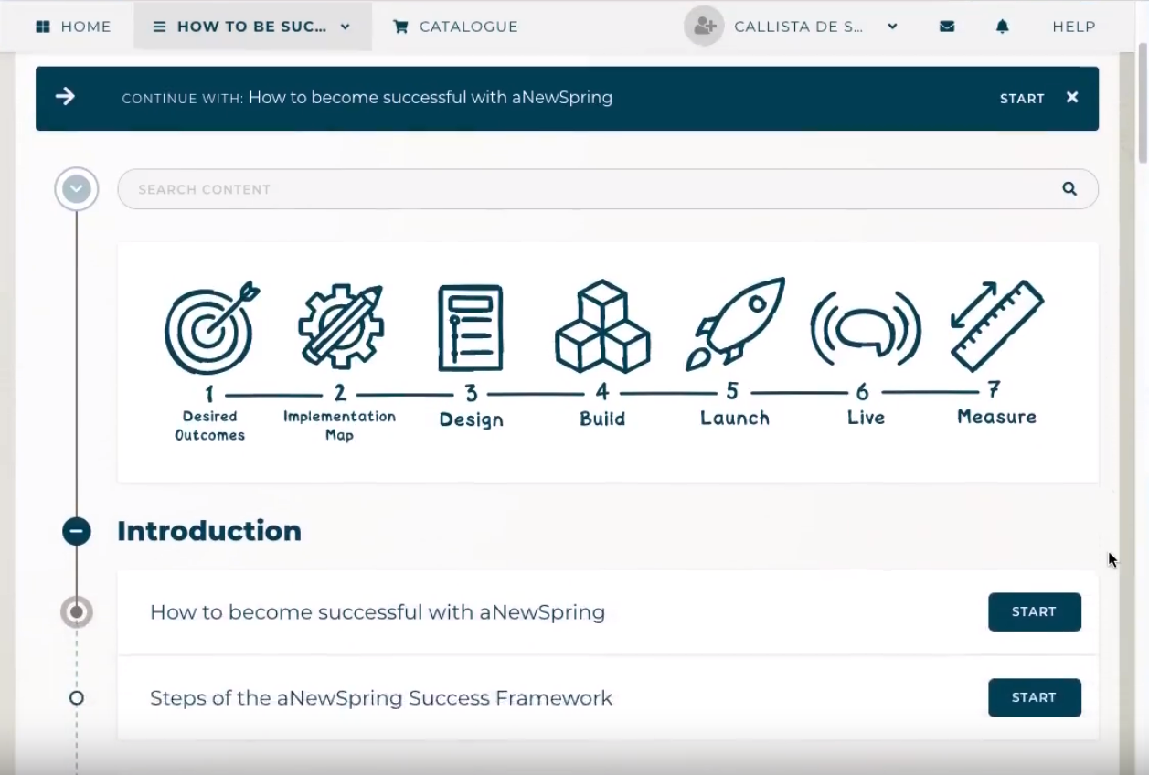 "Succeeding with aNewSpring as a training provider means going beyond course creation. The aNewSpring Success Framework maximizes platform benefits through training sessions, helping you implement successfully."